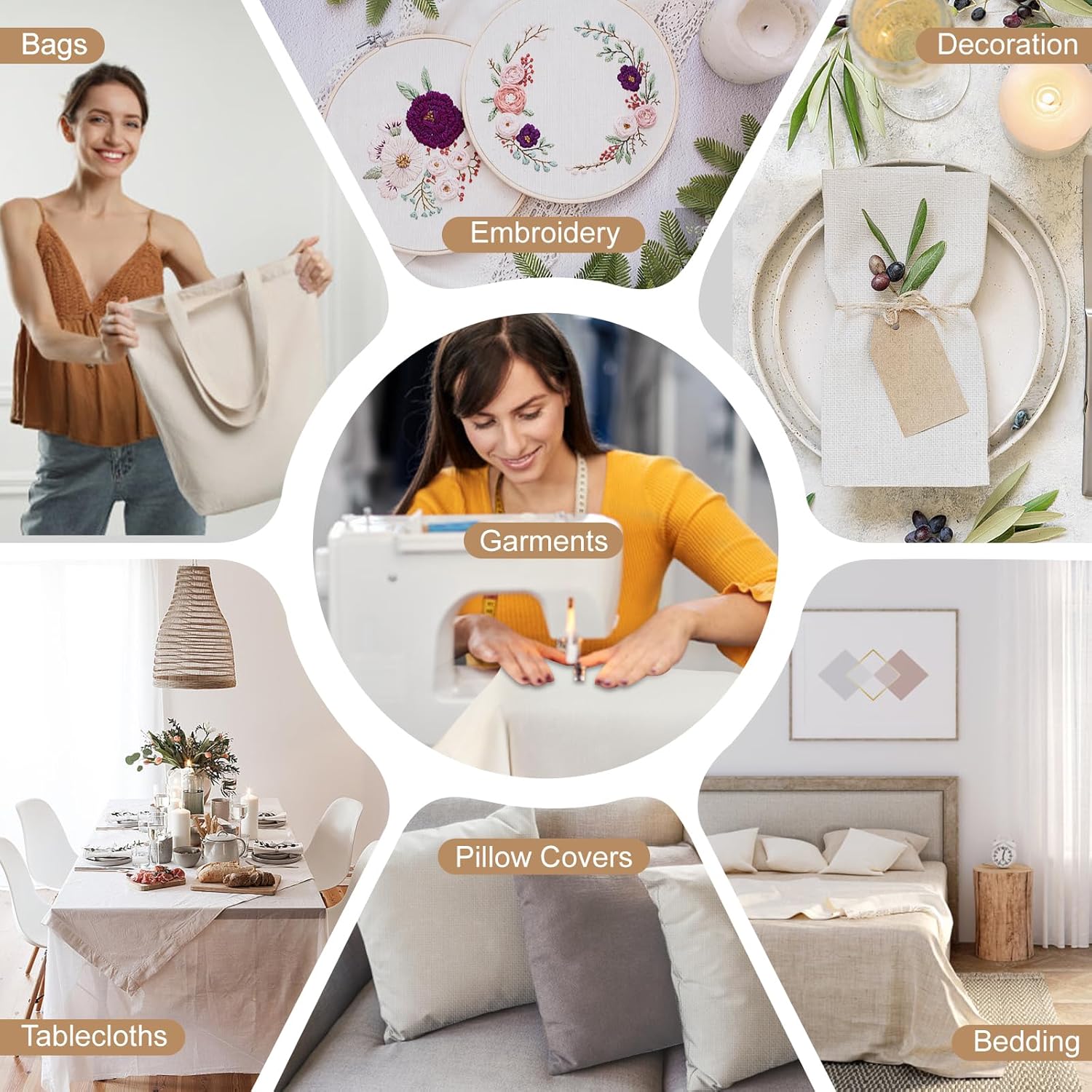- Natural Features: Unbleached linen fabric retains the natural cotton features, which is tough and long-lasting; it may contain some fine cotton seed particles, which is a normal characteristic of natural fabric, so please feel confident using it