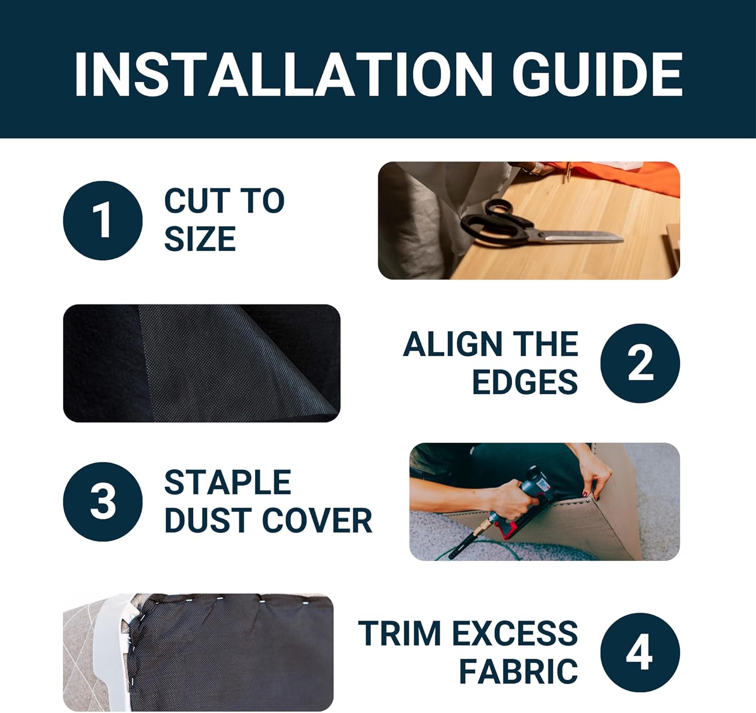 - PROFESSIONAL LOOK - Installing a piece of cambric can make the world of difference when it comes to evaluating the quality of a piece of furniture. This is a major reason that new furniture is never retailed without having a piece of dust cloth on the bottom of the furniture. So regardless of whether you are finishing a new sofa or chair, or discover that your bed box spring is in need of a replacement cover, our dust cover will help you achieve the professional look you're looking for