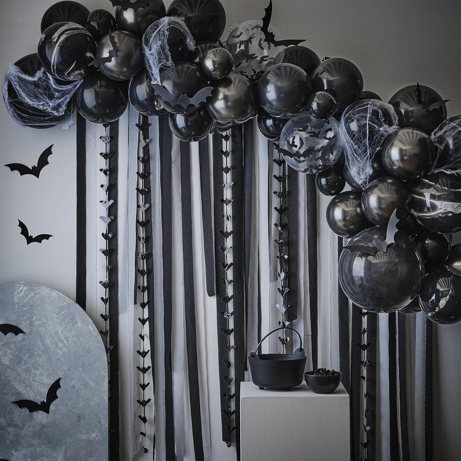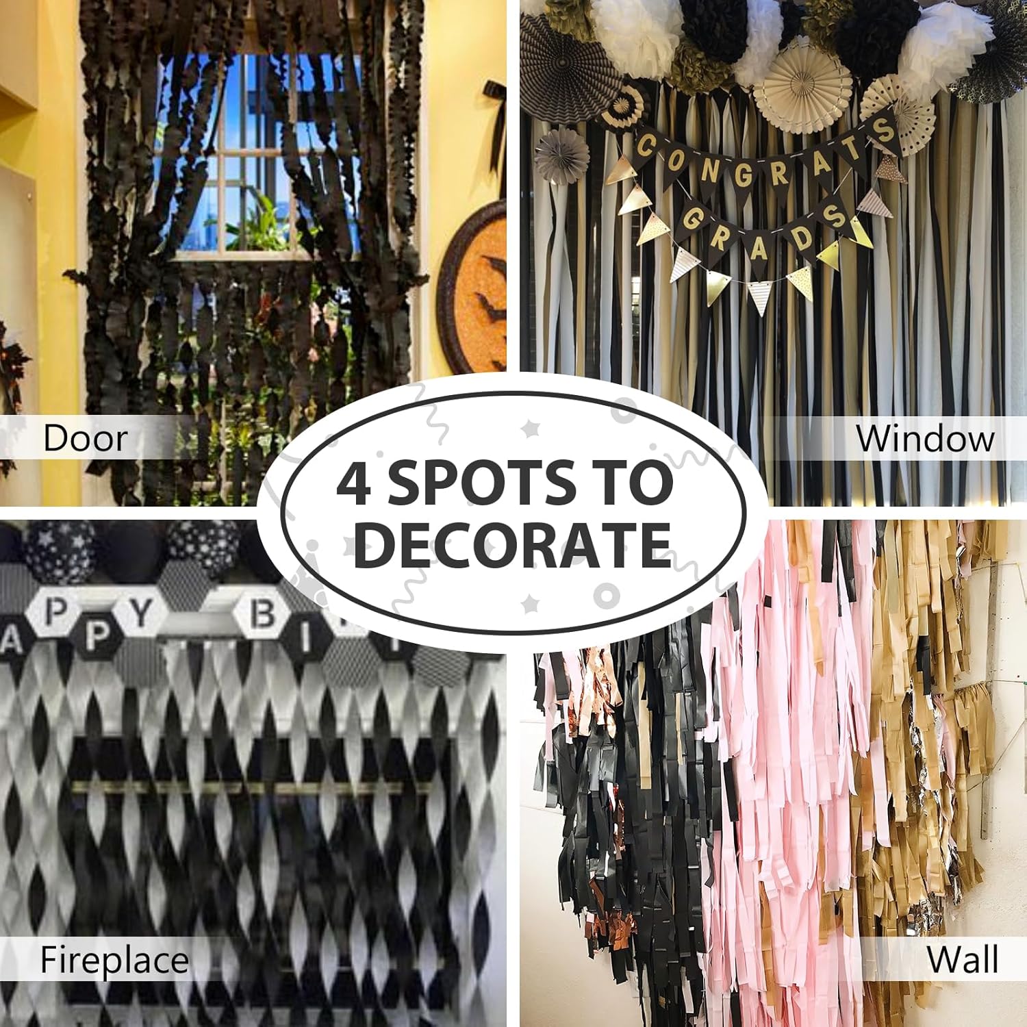 PartyWoo Black Crepe Paper Streamers 4 Rolls 328 ft Pack of Black Crepe Paper for Graduation Halloween New Year Anniversary Birthday Party Decorations (1.8 Inch x 82 Ft/Roll), Black-19