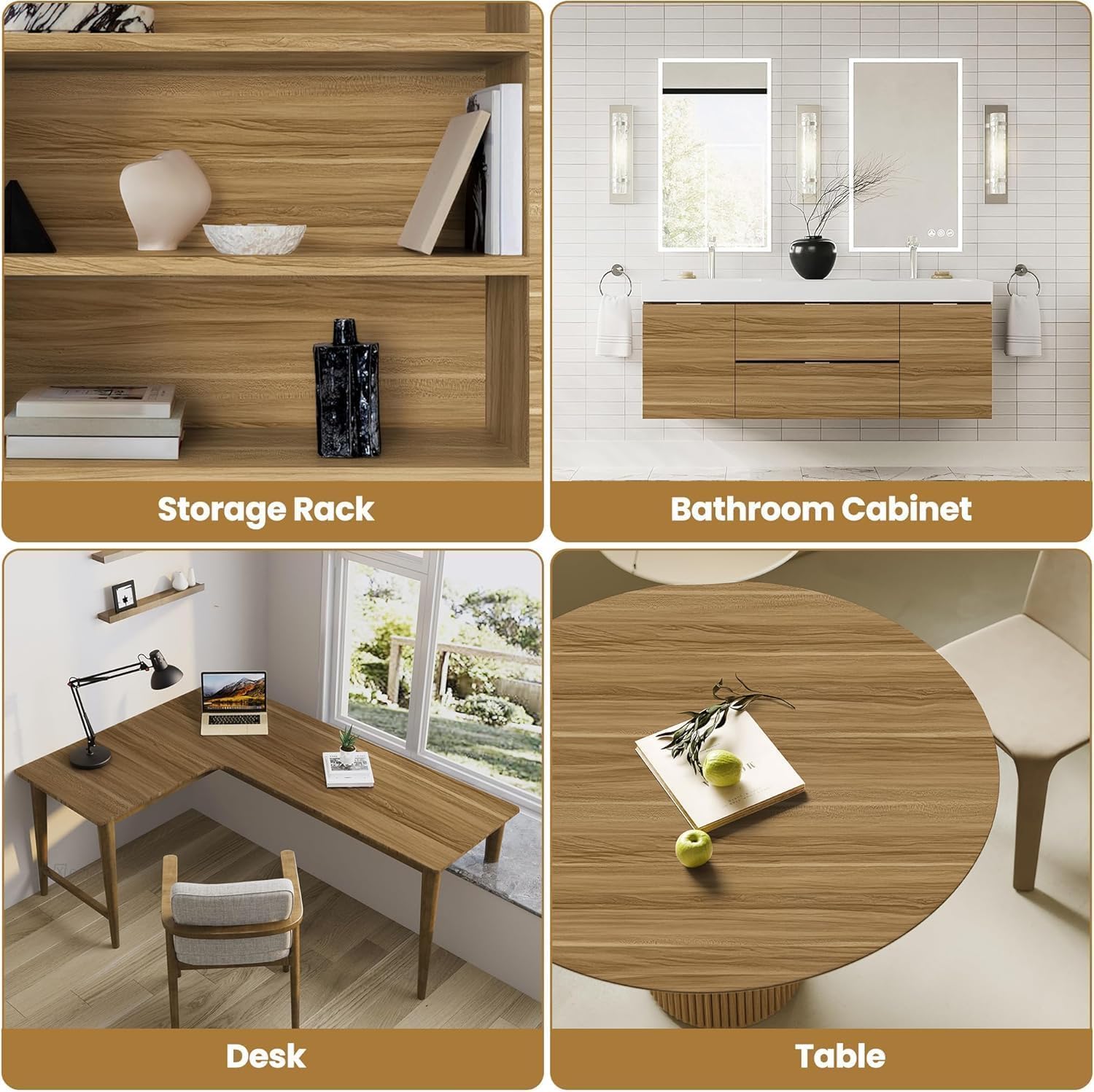 - Widely Applied: Light fake wooden walpaper is suitable for the decoration of smooth, clean and flat objects, such as cabinet, kitchen counters, backsplashes, bathroom, door, office desks, countertops, doors, dressing tables, wardrobes, drawer linings, dresser, shelves, liner, fridge, bookcases; bathroom, bedroom, living room, laundry room, dining room accent walls covering, etc. Meet your different DIY needs (not suitable for rough surfaces, which will affect the stickiness of the product)